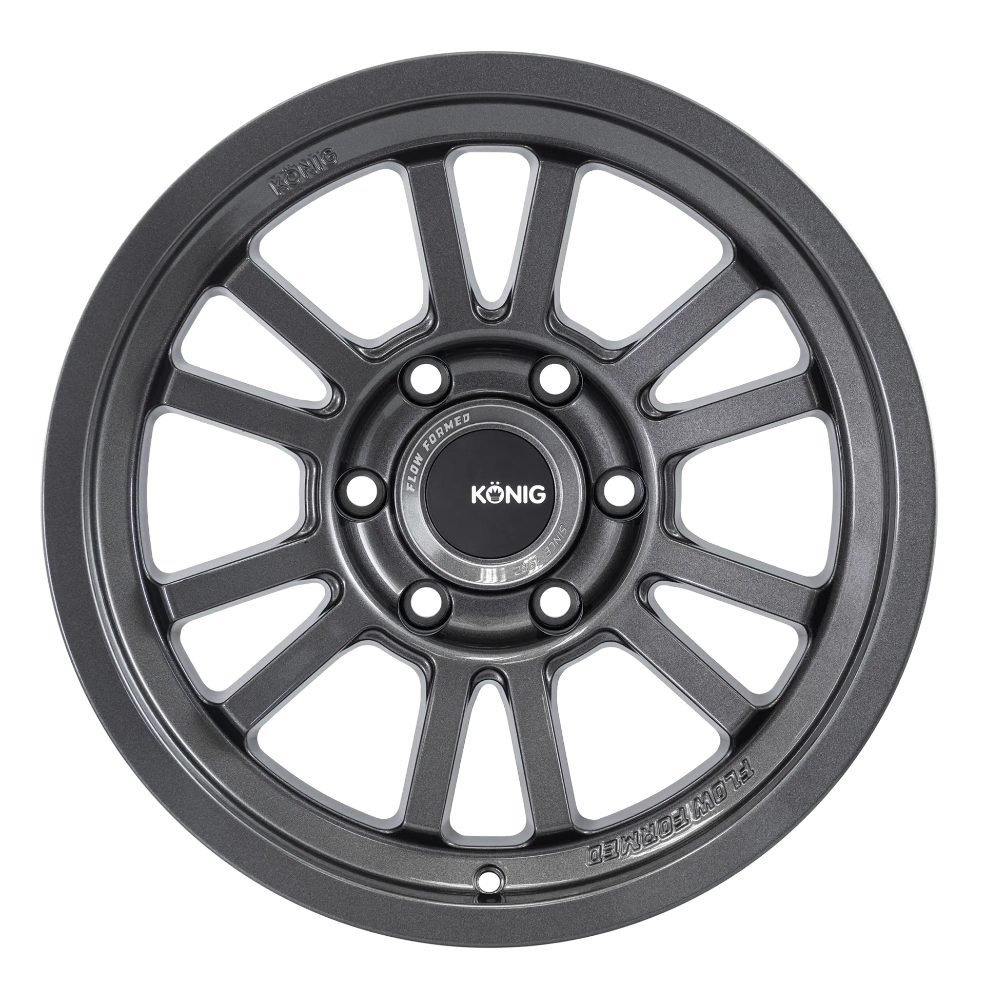 The HT1 is the first model of our new Hyper Trail Truck Series and styled with a 12-spoke flow formed design. The HyperTrail series brings all of the performance benefits that Konig Flow Formed wheels are known for in the motorsport world and offers applications for on and offroad Trucks, Jeeps and SUVs. Every HyperTrail wheel is constructed by utilizing FLOW FORMING TECHNOLOGY, is 2500 lbs load rated, comes with a increased thickness rear flange for extra rigidity, and has knurled bead seats to prevent tire slippage. The HT1 has a unique styled cap perch that allows the wheel to look finish if you choose to run the wheel without the center cap. The choice is yours, however, each wheel comes with the pictured flat, plastic pop-in center cap.
