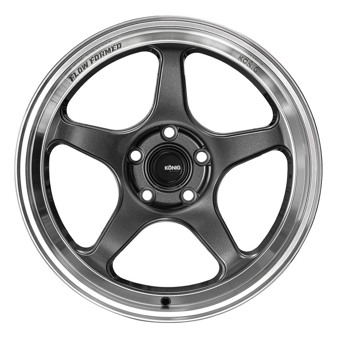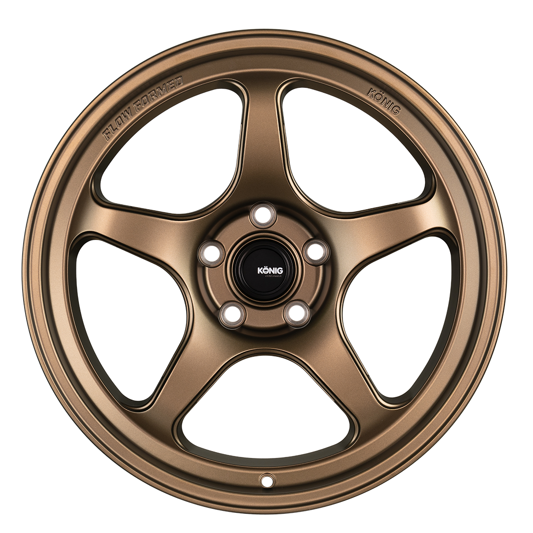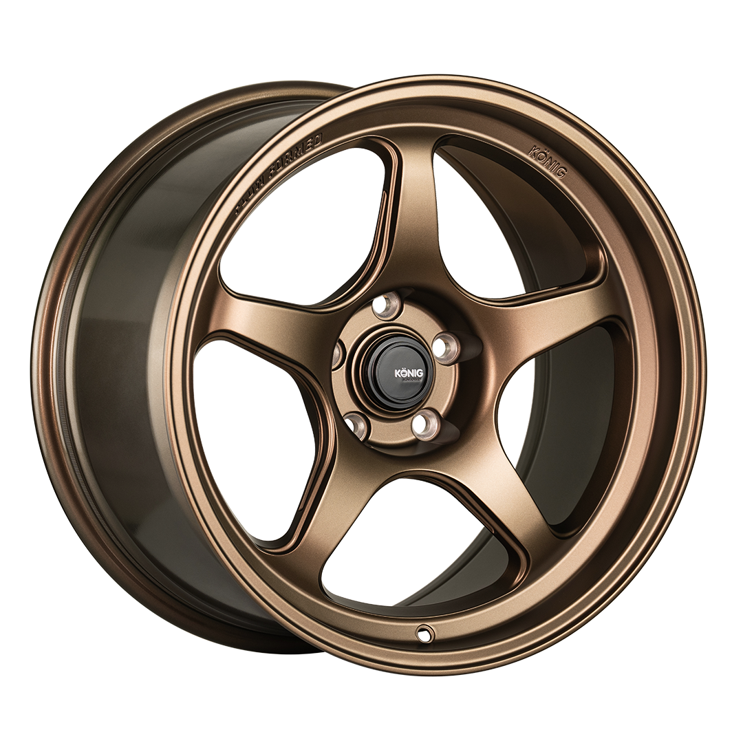 With a range of sizes from 15-inch all the way up to 19-inch applications, the Hyperspec is poised to be a legendary offering from Konig’s Flow Formed line up. Based on a classic 5-spoke design, Hyperspec’s tapered spokes and pronounced stepped lip lend themselves to a simple, aggressive design that matches up perfectly with countless chassis. Available in Matte Bronze and Anthracite Metallic with a mirror machined lip, there’s no paint or vehicle style that won’t look right at home with a set of Hyperspecs mounted!